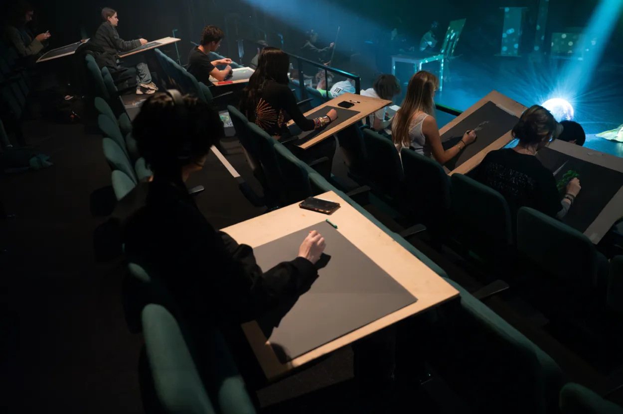 We invited staff in the School of Arts to take part by running an activity and the response was amazing. We had 37 academic staff, 18 technical staff and 10 research staff who ran sessions. This meant we had a really broad range of things for students to choose from, including design drawing, mark making, reportage drawing in the city at night, drawing with knitting and sewing machines, life drawing in our theatre - with stage lighting and disco balls! Our photo techs built a huge camera obscura in one of the photo studios, that was so special. Students were drawing across the campus, in every available space, inside and out. Lots of sessions took place in venues across the city too, helping to introduce our new students to their new home.